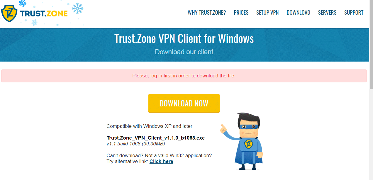 و بذلك تم تأكيد الحساب بنجاح . عد مرة اخرى لصفحة التحميل سوف تجد ان التحميل عمل بشكل تلقائى و سوف يتم تحميل برنامج Trust Zone كما موضح فى هذه الصورة :
