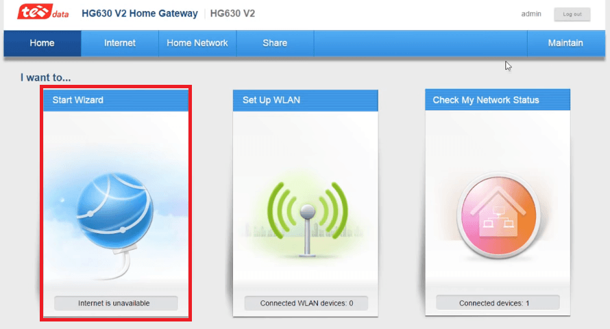 كيفية تشغيل خدمة الانترنت على راوتر We HG630 V2 :